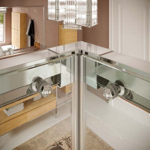 - Esta mampara también dispone de un sofisticado mecanismo liberador de la hoja corredera de la guía inferior para acceder a una limpieza más cómoda