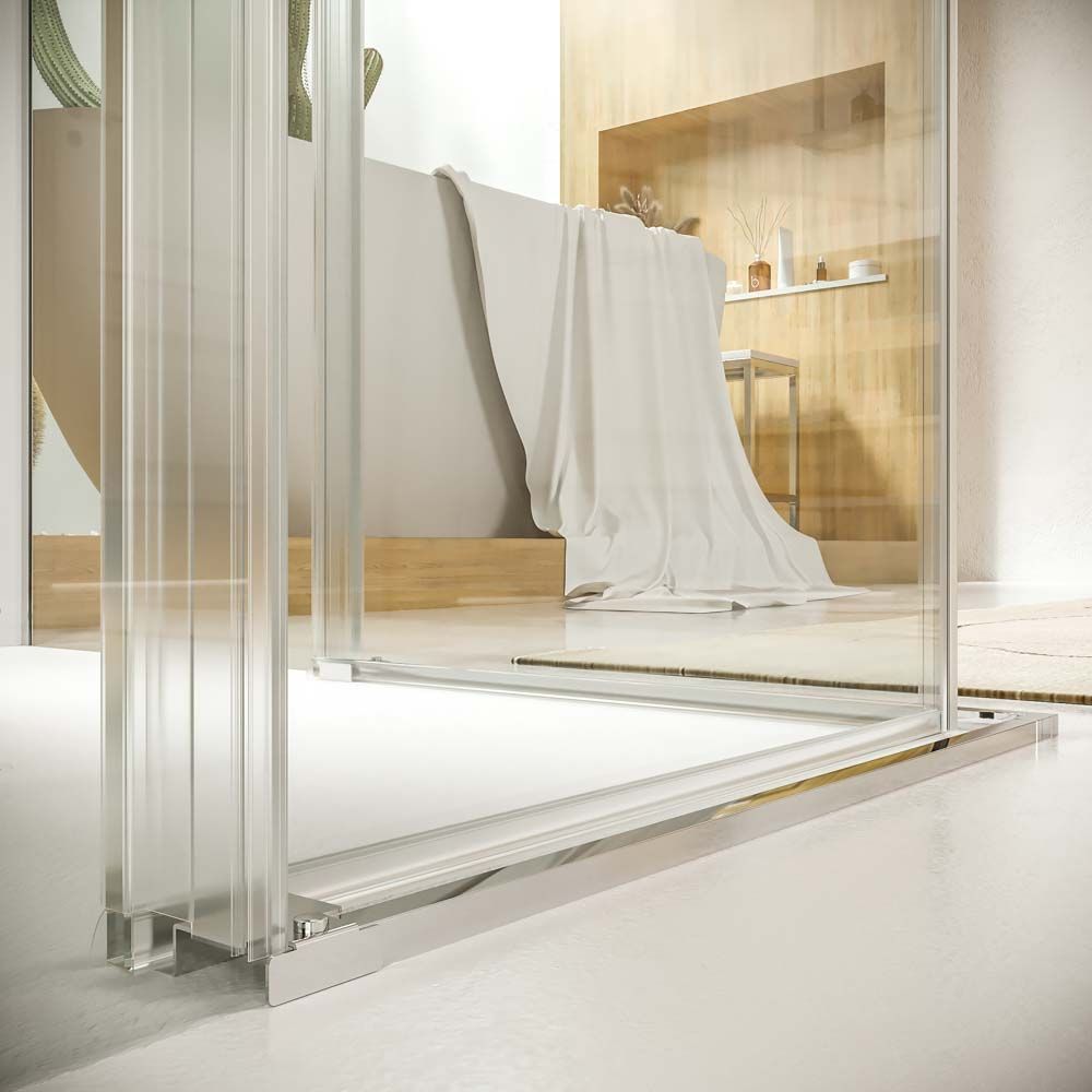 Además es una mampara sin perfil inferior. Esto significa que no necesita estructura o marco en la parte inferior, permitiendo una entrada a la ducha, cómoda y sin escalones. También da un aspecto mas moderno y minimalista.