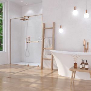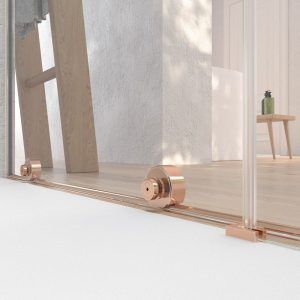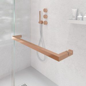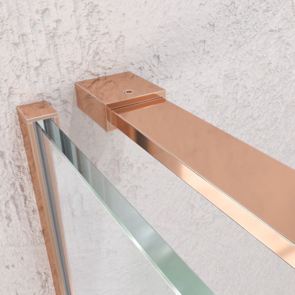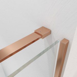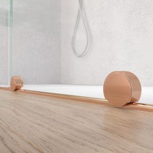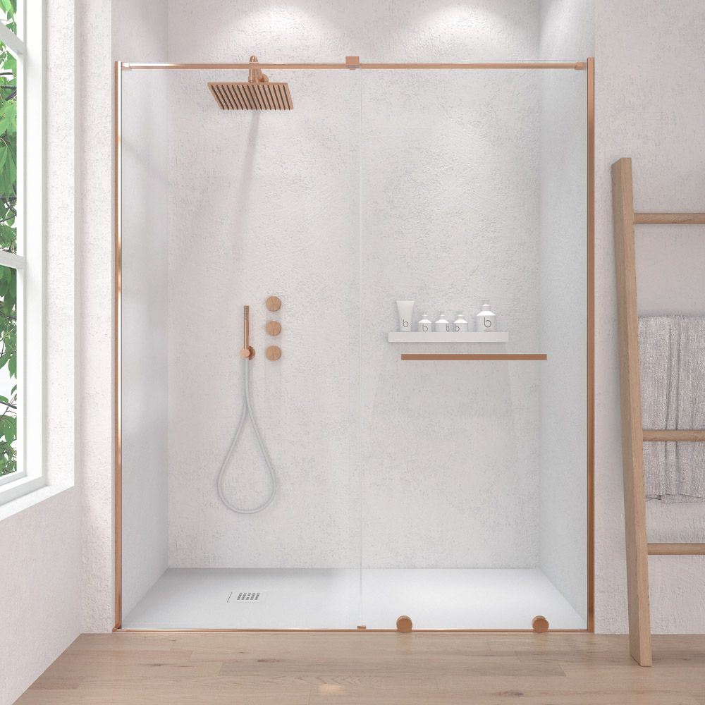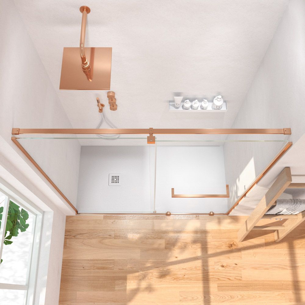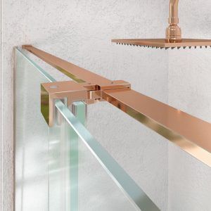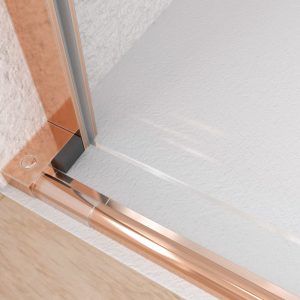 - La perfilería de acero inoxidable en cobre mate contribuye a mejorar una mampara de ducha de líneas depuradas y aspecto minimalista.