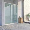 - Compuesta por una hoja fija y una corredera. La hace perfecta para colocar en baños abigarrados ya que admite obstáculos cerca de la parte fija y la puerta no necesita espacio extra para abrirse. Además, deja un amplio acceso.