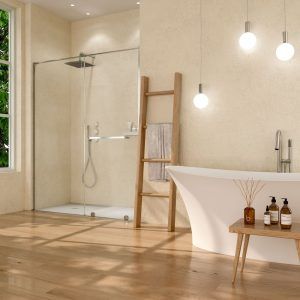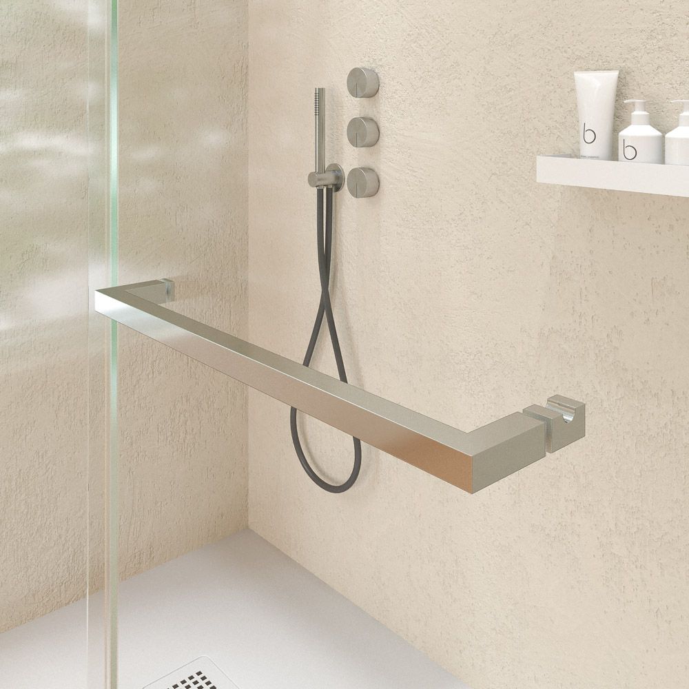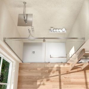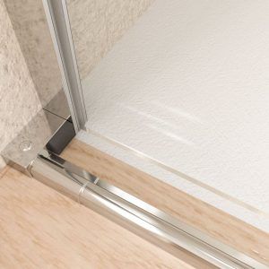 La perfilería y los complementos son de acero inoxidable y el vidrio es de 8 mm. Esto la convierte en una mampara de ducha corredera resistente al desgaste que, además, cuida los detalles de diseño.