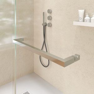 - La perfilería de acero inoxidable contribuye a mejorar una mampara de ducha de líneas depuradas y aspecto minimalista.
