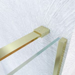 Sé el primero en valorar “Mampara de ducha VERONA frontal 1 fijo – 1 puerta corredera sin perfil superior. Acabado ORO MATE”